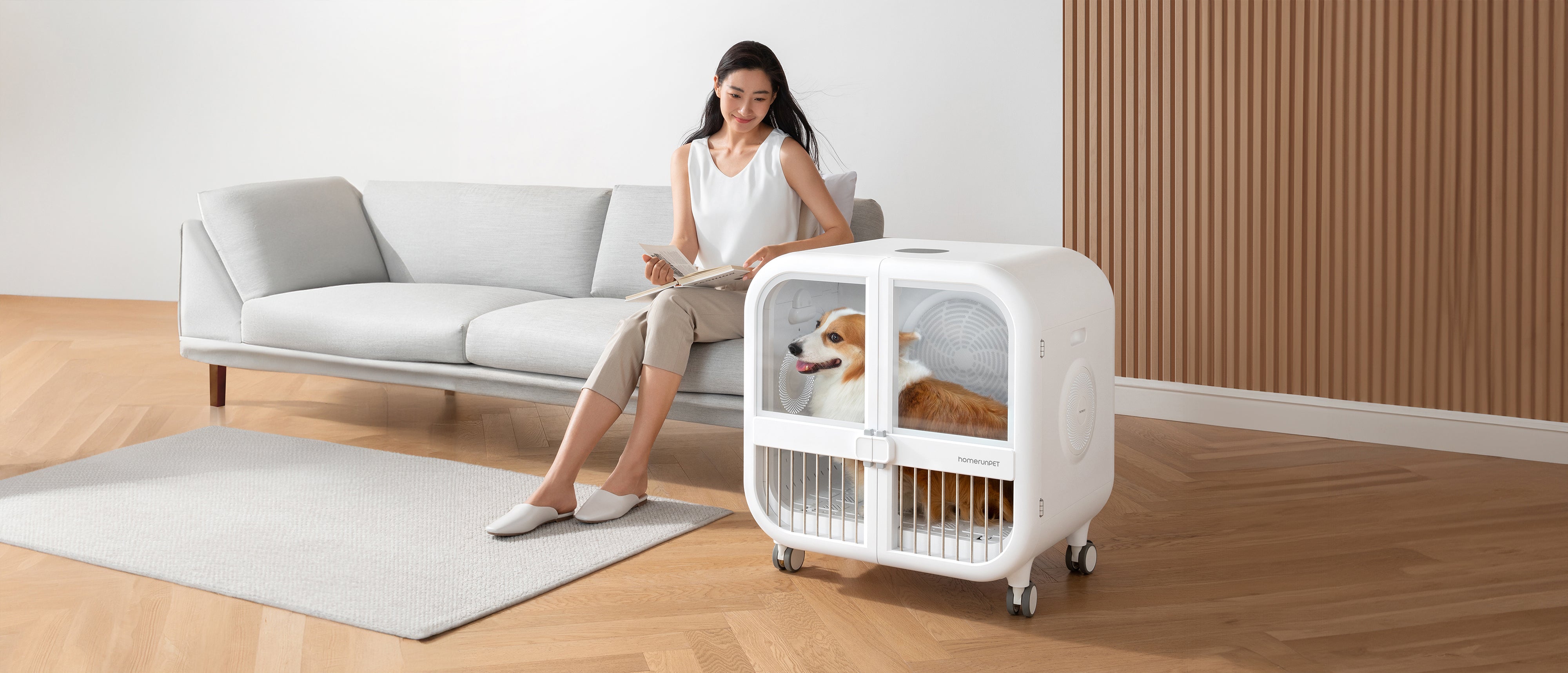 静かな風が優しく包み込んで全身をドライ、床からの風がお腹も足元もしっかり乾燥、世界中で20万を超えるペットとその飼い主様に選ばれているドライヤーハウスです。
